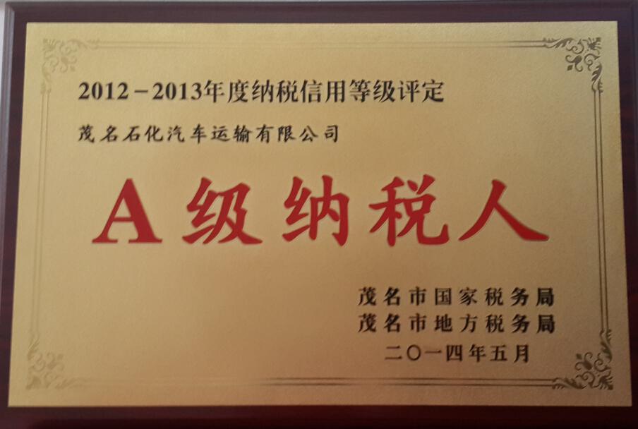 2012-2013年度納稅等級評定